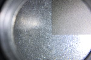 Metalloberflächen. Über die Pulslänge und Pulsenergie werden Wirkdauer und Stärke des Abtrags und die Rauigkeit der Oberfläche bestimmt.